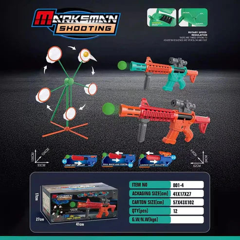 Marksman Shooting Gun Set (Model 801-4) – A battery-operated toy rifle with long-range soft dart action, rotary target, and adjustable speed for interactive shooting fun.
